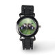 Cette belle montre présente une photo d'un beau papillon tropical. Cette espèce est principalement noire avec de belles taches bleues irisées sur chaque aile. La photo a été prise en utilisant la macro photographie pour un résultat étonnamment détaillé.