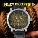 Une illustration frappante présente un bison d'or avec des cornes proéminentes, sur fond de motifs floraux détaillés.