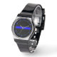 Une ligne Bleue Mince symbolique graphique de design personnalisé sur une montre. Une excellente idée cadeau pour les rassemblements, les célébrations commémoratives et les occasions de commémoration. Utilisez le lien "Contacter ce concepteur" pour nous contacter avec vos demandes de design spécial ou pour obtenir de l'aide pour tout projet de personnalisation.