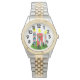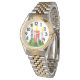 Cette montre pour hommes a un design de Noël de bougies en rectangles décorés d'étoiles, d'ovales ou de diamants avec des arbres regroupés autour du fond.