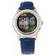 Une montre avec une photo d'une boule de bowling s'écrasant dans des épingles de bowling.