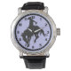 Cette montre au poignet présente une image en silhouette noire d'un cowboy sur un bronco cinglant. L'image est placée sur un arrière - plan bleu clair, et est entourée de chiffres noirs et de segments minuscules pour le rendre facile à lire.