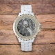 Cette montre de keepsaké présente votre photo préférée avec le mot "Amour", incrusté dans un romantique script de brosse décorative blanche. Commandez pour vous-même ou pour quelqu'un que vous aimez.