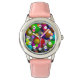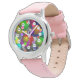 Bulles (Mayan Face) Montre de bracelet en cuir rose acier inoxydable pour enfant. Image Copyright (C) Kenneth Kenji Yoncich. Tous droits réservés.