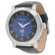 Un accent personnalisé bleu sur une montre de mode graphique en fibre de carbone. Bon pour une occasion patriotique, un cadeau sportif ou un décor à l'allure industrielle urbaine automobile. Cliquez sur le bouton "Customisez-le !" pour une personnalisation de texte facile. Présentation