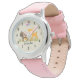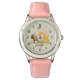 Montre personnalisée avec une jolie illustration montrant un cerf de bébé et un petit écureuil tenant une glande et un papillon volant au-dessus de leur tête. Ces adorables créatures boisées se tiennent debout sur une herbe avec quelques champignons fantaisistes à leurs pieds. L'Arrière - plan a un look de papier kraft brun.