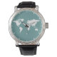 Carte du monde sur pièce de temps couleur personnalisée bleue