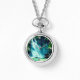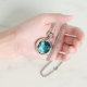 Montre pendentif sur l'illustration d'une cascade en bleu pâle avec spray blanc, entourée de rochers et de feuilles verts