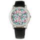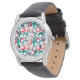 Cette montre pour hommes a un design moderne du milieu du siècle de cercles en bleu, turquoise, rose, violet et baies avec ovales blancs à l'intérieur.