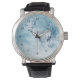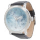 Une montre avec l'image d'un cerf majestueux en hiver. Un arrière - plan filtré bleu glacé donne à cette photo un air froid d'hiver avec une sensation magique. Un cerf noble se dresse sur une colline avec des pins d'hiver en arrière - plan