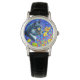 Montre représentant la peinture animale de Louis Wain Chat in Sea of Flowers (1860-1939). Un chat noir et blanc aux yeux dorés sent les fleurs jaunes. Dans l'arrière - plan violet sont des fleurs bleues. Un cadeau merveilleux pour l'art amoureux des chats et anglais.