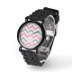 Montres de Parties scintillant Monogram sur mesure. Chevron rose et gris avec Monogramme personnalisé.