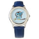 La montre élégante personnalisée présente une illustration vectorielle douce d'un hibou perché sur une branche d'arbre sur un arrière - plan motif pois. Babystar Design à l'adresse mygrafico.com