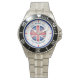 Cette montre inoxydable est décorée d'un drapeau britannique rond et peut être customisée de vos mots au-dessus et au-dessous.