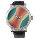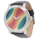 Ondes multicolores de style rétro géométrique motif avec illustration géométrique orangée, rouge, beige, bleu et turquoise rayures ondulées sur arrière - plan bleu foncé
