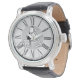Cadeau pour un constructeur. Builder est debout avec des matériaux de construction autour de lui. Une montre amusante pour un constructeur, un fournisseur de matériaux de construction ou un ouvrier de construction. Montre de fabricant de cadeaux élégant. Chiffres romains audacieux et un visage de montre noir, blanc et gris. Montre du constructeur.