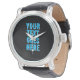 Montre custom your text goes here, black with blue text