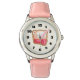 Une montre avec un joli et adorable visage d'ours dressé sur une base de biscuits. Portant un foulard rayé rouge et blanc.