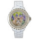 Un chaton adorable sur un rocher dans un jardin fleuri. Un mignon petit chat rouge aux yeux bleus magnifiques, photo prise par Katho Menden. Cette montre en strass pour femmes avec plaque d'appel est une idée cadeau pour les amateurs de chat et d'animal de compagnie. http://www.zazzle.com/kathom_photo - Si vous voyez un design qui n'est pas disponible sur votre produit désiré, n'hésitez pas à me contacter par mon magasin et je serai heureux de créer le produit pour vous dès que possible.