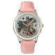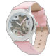 Une montre avec une drôle de photo d'un chat tabby. Les cheveux sur le dos légèrement surélevés et il a une expression surprise sur le visage. Joli et adorable. Ça te fait sourire. :)