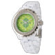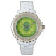 Ajoutez vos propres initiales à ce visage de montre personnalisable. Un magnifique panneau en dollars sur un arrière - plan de dégradé vert à motif tourbillon fait vraiment ressortir cette montre. Les indicateurs d'heure numérotés avec des divisions de minutes le rendent fonctionnel et facile à lire. Il s'agit d'une belle idée de cadeau personnalisable et unique.