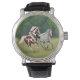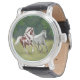 Design d'art original d'Appaloosa galopante et de chevaux Paint par l'artiste équine Carolyn McFann de Two Purring Cats Studio imprimé sur une montre de qualité pour les amateurs d'équitation occidentaux et anglais.