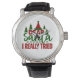 Celebrate the season with a wink! This festive watch features the humorous phrase “DEAR Santa I REALLY TRIED” surrounded by Christmas trees, snowflakes, and a jolly Santa hat. A perfect holiday gift or personal accessory for those who love Christmas with a playful twist.