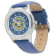 Montre d'enfant personnalisée avec le shérif de police jaune modèle de badge étoile. Montres poignées personnalisées pour enfants. Une idée cadeau unique pour les garçons et les filles. Créez un pour le futur flic, fils, petit-fils, neveu, petit frère, frère, frère, fille, petite-fille, cousin, ami, enfant, petit-enfant, petite ou grande soeur etc. Amusants thèmes d'application de la loi cadeaux pour futur officier, gendarme, garde de sécurité, shérif adjoint ou agent secret. Aussi grand que cadeau de Noël pour les fêtes. Comprend une bande de couleur bleue. Protéger et servir. Idéal pour les flics et les voleurs jeux.