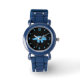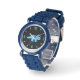 Une montre-bracelet noire avec un petit Tricératops. Les trois cornes sur sa tête lui vont très bien. C'est un beau cadeau pour les enfants qui aiment les dinosaures et les animaux de l'époque.