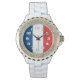 Le drapeau de la France avec des numéros de visage à horloge blanche.