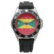 Ce dessin est orné du drapeau national de la Grenade, un pays des Antilles dans la mer des Caraïbes à l'extrémité sud de la chaîne des îles Grenadines. La Grenade se compose de l'île de Grenade elle-même, de deux petites îles, Carriacou et Petite Martinique, et de plusieurs petites îles qui se trouvent au nord de l'île principale et font partie des Grenadines. La Grenade est située au nord-ouest de Trinité-et-Tobago, au nord-est du Venezuela et au sud-ouest de Saint-Vincent-et-les Grenadines. La Grenade est connue sous le nom d'"île aux épices" en raison de sa production de noix de muscade et de cultures marécageuses. Un habitant de Grenade est connu sous le nom de Grenadien. La capitale de la Grenade est St. George's, qui est aussi la plus grande ville du pays. Les autres grandes villes de Grenade comprennent Sauteurs, Gouyave, Grenville et Hillsborough.