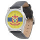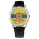 Montre avec drapeau de la ville de St Paul, Minnesota; drapeau avec trois bandes horizontales de bleu et jaune avec emblème rouge au centre