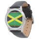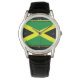 Drapeau jamaïcain noir, jaune et vert avec des numéros de garde du temps. Une montre élégante au poignet pour femme jamaïcaine avec fierté.