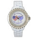 Montre Drapeaux grecs et américains Coeurs Pays Ancêtres