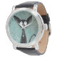 Montre Drôle mignon Chat Noir Art sur Blue Damask