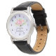 Une montre avec une belle et élégante aquarelle créée bouquet floral. Fleurs de jardin roses entourées de feuillage vert clair. Arrière - plan d'aquarelle violette.