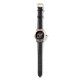 Elégant Monogram D Rose Gold sur Black Arrière - plan, aucun or rose réel n'est utilisé dans la fabrication. Monogramme Carré bracelet en cuir noir