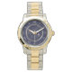 "Embrace timeless sophistication with this elegant two-tone watch, featuring a deep navy-blue dial adorned with classic Roman numerals. The luxurious Silver and Gold bracelet beautifully complements the intricate detailing and distinctive branding on the watch face. Perfect for adding a touch of refined style to any ensemble, this watch is a statement of classic elegance."