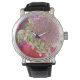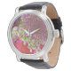 Montre Élégante Chartreuse Vert, Rose et Bleu Hydrangée