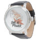 Autonomisation d'oeuvres d'art moderne avec un portrait d'art féminin audacieux avec des cheveux désert qui coulent. La phrase She Is Power met l'accent sur la force et la confiance, tandis que l'accent du renard du désert ajoute une identité artistique unique. Parfait pour l'art mural inspirant, les cadeaux d'autonomisation des femmes et le décor moderne et élégant.