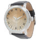 Conception originale créée d'un évent circulaire avec un recouvrement concret de texture, lui donnant suite grunge dans les nuances du beige et du brun. Montre très élégante et originale.
