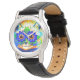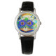 Montre représentant la peinture animale de Louis Wain Cat Flower Eyes (1860-1939). Un chat arc-en-ciel grince largement. Des fleurs bleues recouvrent ses yeux. Un cadeau merveilleux pour l'art amoureux des chats et anglais.