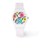 Motif moderne et audacieux aux couleurs estivales avec décoration en feuilles noires sur montre personnalisée.