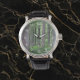 Montre élégante au poignet pour hommes avec des chiffres blancs qui montre l'image d'une forêt de conifères luxuriante et à feuillage persistant dans le Pacifique Nord-Ouest. Sélectionnez votre montre dans plusieurs styles.