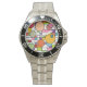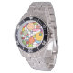 Cette montre a un design moderne du milieu du siècle d'une grille avec quelques rectangles colorés et des cercles sur le dessus dans des couleurs rétro.