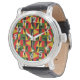 Cette montre pour hommes a un design Black History de triangles et rectangles en or, rouge, vert et noir faisant un motif.