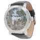 Le visage de cette montre est orné d'une photo d'un bébé hibou en hauteur dans un arbre. Les mots "Hoo" a le temps" sont imprimés sur le visage. Cette montre pourrait être un grand cadeau de Fête des pères.