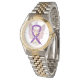 La montre au poignet présente l'art d'un ange ruban de conscience violet. Le message sur la montre indique "TEME TO HOPE" mais il peut être customisé de changer le message en "CURE" ou d'autres mots. Ce ruban de conscience violet montres à poignet fait pour une grande conscience ruban bijoux anges cadeaux! Un ruban de sensibilisation violette signifie soutien au cancer du pancréas, à la maladie de Crohn et à la colite, à la maladie d'Alzheimer, à l'intimidation antigays (Journée de l'Esprit), au survivant du cancer (toutes sortes), à la violence domestique, au lupus, au syndrome de Sjögren, à la douleur chronique, au leiomyosarcome, à la malformation Arnold-Chiari, à la migrante, à la, à la fibrose kystique, tinitis Pigmentosa et Fibromyalgie. Que ce ruban de conscience violet soutienne ces causes !