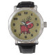 Une montre avec une illustration de rennes de Noël rouge. Festif et mignon. L'arrière - plan est une image numérique de papier kraft brun, pas de papier kraft réel.
