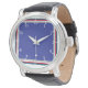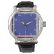 Vous apprécierez la simplicité de ce visage de montre bleu, rouge, gris et blanc.